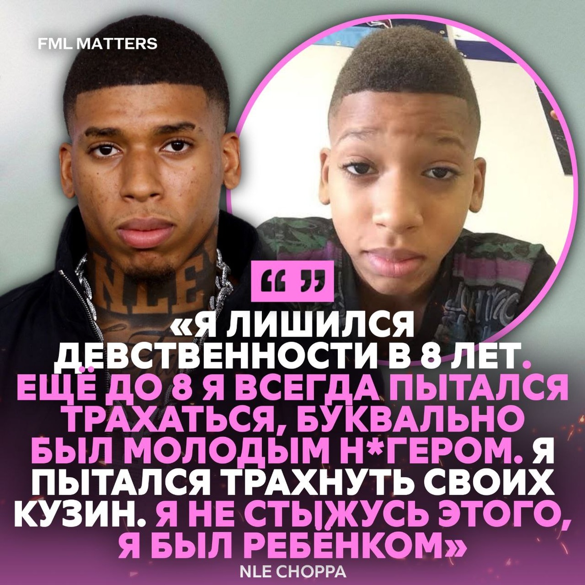 ! Рэпер выдал откровения на своём стриме, рассказав, что лишился девственности в восемь лет. По его словам, ещё до этого возраста у него были попытки вступить в половые связи с двоюродными сёстрами, но дальше определённых действий дело не заходило. «Как только я родился, я хотел вернуться обратно в киску» 💀 FML MATTERS