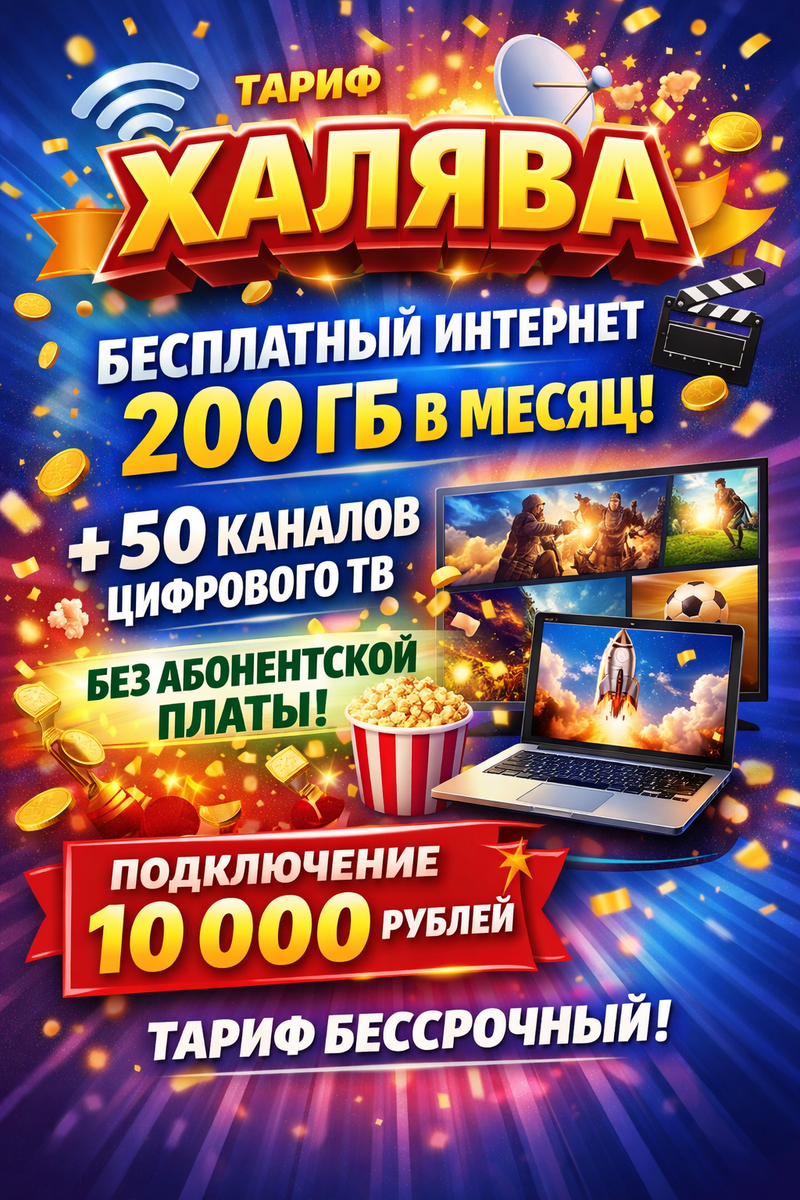 В эпоху, когда бесплатный интернет становится настоящей необходимостью, многие ищут выгодные предложения от операторов. Один из самых привлекательных вариантов — тариф Халява, который предлагает не только солидный объем трафика, но и доступ к цифровому телевидению. Представьте: от 50 до 200 ГБ интернета ежемесячно без ежемесячных платежей, плюс 50 каналов в приложении Билайн ТВ. Это звучит как настоящая халява, и в этой статье мы разберем, как это работает, кто может подключиться и почему это может стать вашим идеальным выбором. Тариф Халява — это уникальное предложение от абонента Билайн, которое позволяет получить бесплатный доступ к интернету и телевидению без постоянных затрат. Подключение осуществляется один раз, и дальше вы наслаждаетесь услугами бессрочно, пока сами не решите отключить. Это не стандартный план от оператора, а скорее персонализированная халява, доступная через специальный канал. Важно отметить, что цифровое ТВ работает исключительно в приложении Билайн ТВ, что де