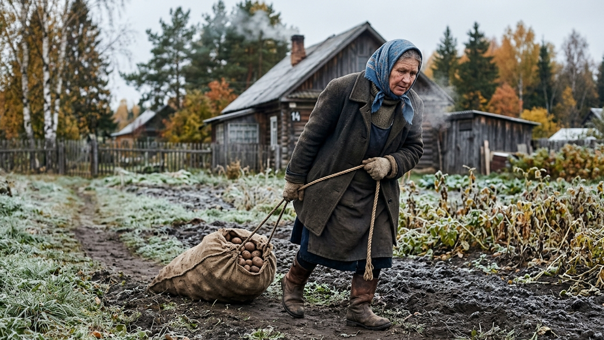 Сентябрь у нас в Заречье - месяц рабочий. Огороды, картошка, заготовки. Небо ещё светлое, синее, но холод уже есть - утренний, с инеем на траве, с паром изо рта. Земля под ногами твёрдая по утрам - к обеду отходит, раскисает, а к вечеру снова прихватывает. И так каждый день.