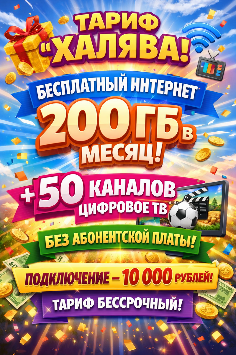В эпоху, когда бесплатный интернет стал настоящей мечтой для многих пользователей, операторы связи предлагают все более привлекательные опции. Один из таких хитов – тариф Халява, который позволяет наслаждаться солидным объемом трафика и цифровым телевидением абсолютно бесплатно после подключения. Если вы ищете способы сэкономить на связи и развлечениях, эта статья раскроет все секреты этого предложения от Билайн. Давайте разберемся, как получить от 50 до 200 ГБ в месяц и доступ к 50 каналам в удобном приложении. Тариф Халява – это специальное предложение от оператора Билайн, ориентированное на абонентов, желающих получить максимум выгоды без ежемесячных платежей. Основная фишка: после разового подключения вы получаете бесплатный интернет в объеме от 50 до 200 ГБ ежемесячно, плюс бесплатное цифровое телевидение с 50 каналами. Это идеальный вариант для тех, кто много времени проводит онлайн – смотрит видео, скачивает файлы или просто серфит в сети. Поисковые запросы вроде "бесплатный инт