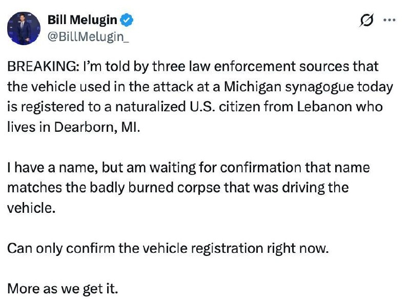 Vehicle used in Temple Israel attack is registered to a ‘naturalized US citizen from Lebanon who lives in Dearborn’ — Fox News