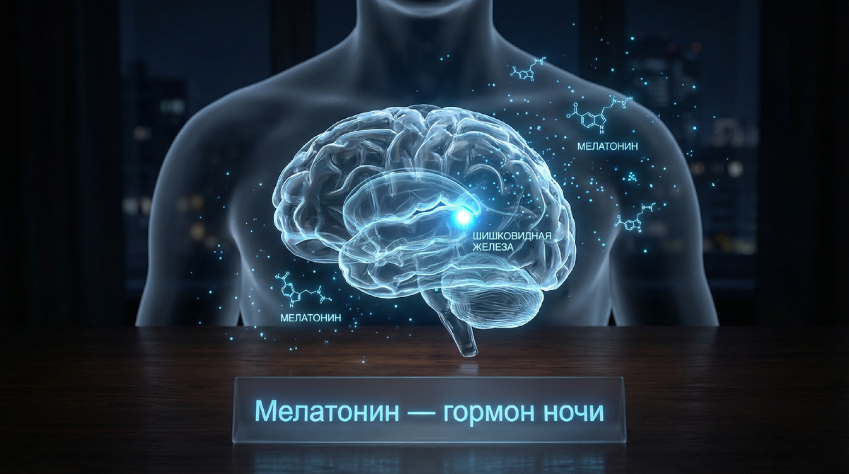 Его главная задача — синхронизировать внутренние часы организма с внешним светом. Когда темнеет, уровень мелатонина растёт, давая команду всем клеткам: «Ночь, пора спать и восстанавливаться». С рассветом выработка прекращается.