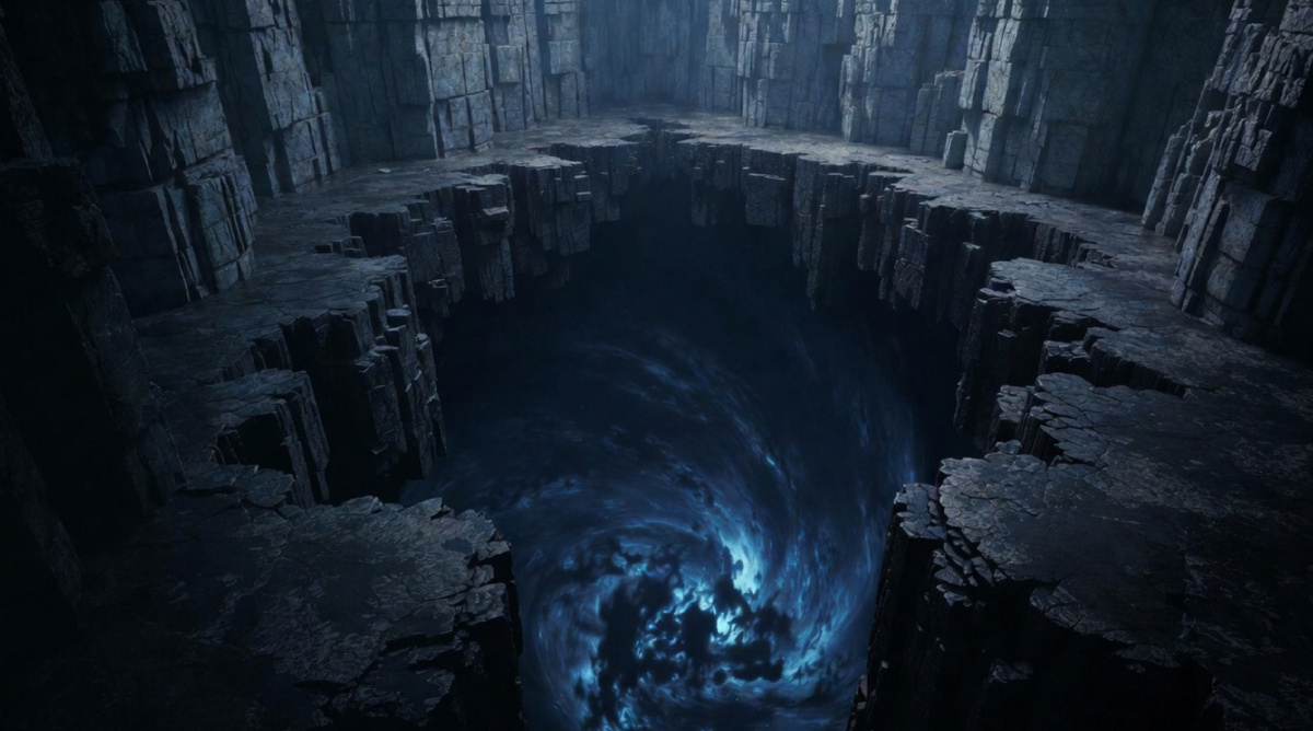 Они вошли в огромный зал, где пола не было — только бездонная пропасть, из которой поднимался холодный, голубоватый свет. В центре пропасти пульсировало нечто — сгусток тьмы, переливающийся миллионами оттенков.