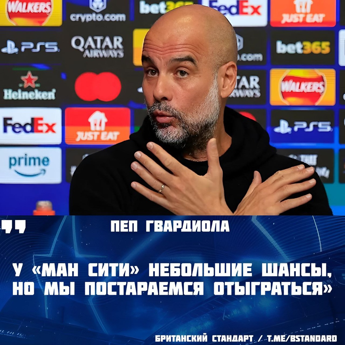 Главный тренер ⚽️ «Манчестер Сити» ⚽️ Пеп Гвардиола оценил шансы своей команды отыграться дома после поражения от ⚽️ «Реала» (0-3) в первом