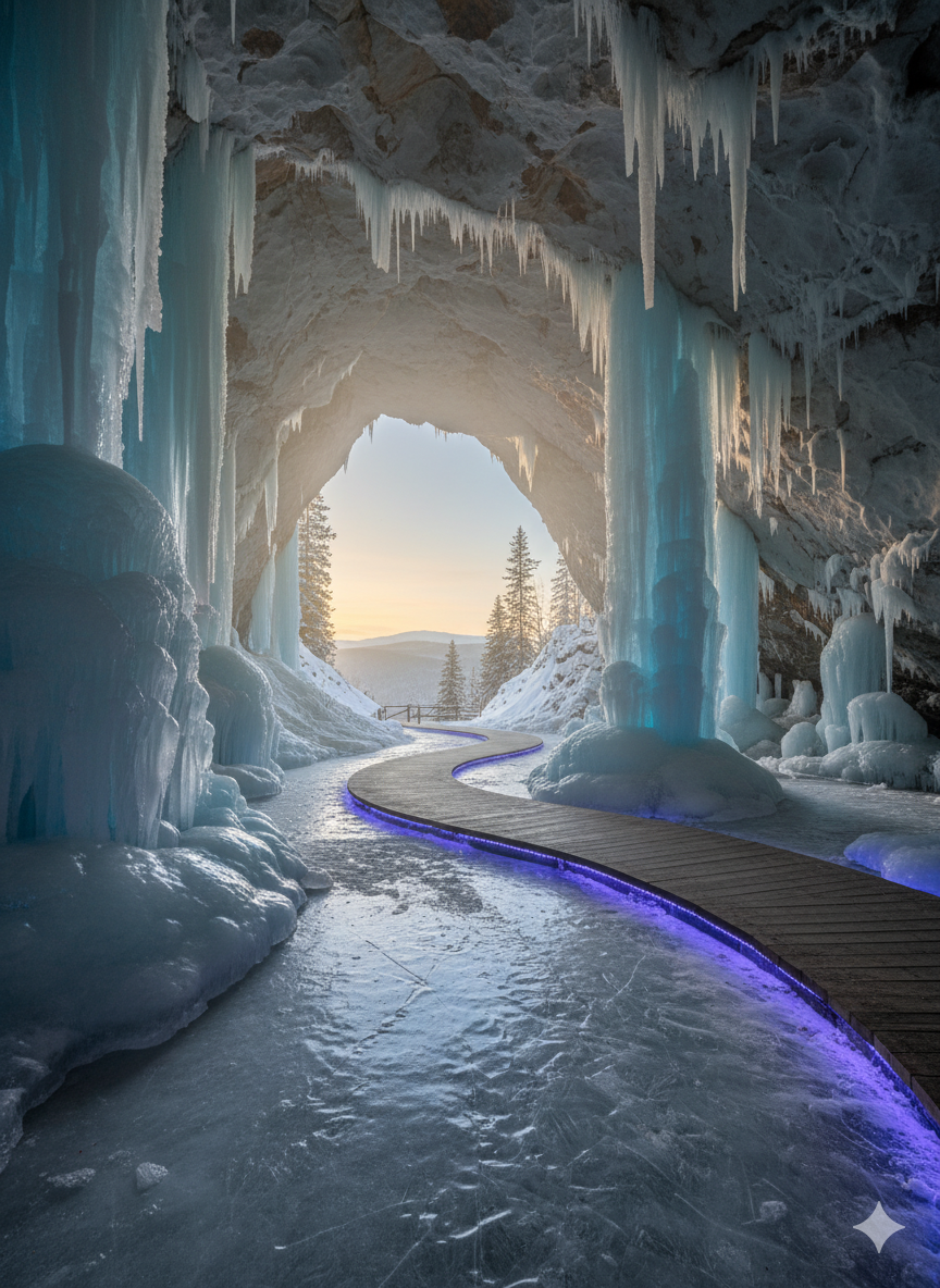 - Лучшее время для посещения: конец зимы — начало весны, когда ледяные образования достигают максимальной красоты.