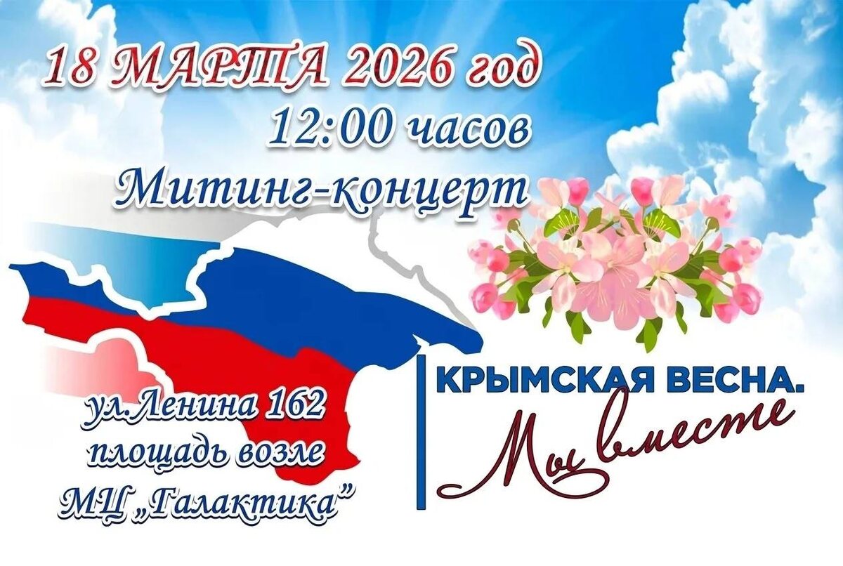 📅 Дата: 18 марта 2026 года ⏰ Время: 12:00 📍 Место: площадь возле молодёжного центра «Галактика». Приглашаем принять участие в митинге! Это значимое событие — отличная возможность собраться вместе, почувствовать единство нашей страны! 🇷🇺 #КрымРоссия #ИланскоНижнеингашскийОкруг #12ЛетВместе