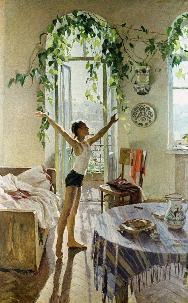 Кстати, девочка на картине «Утро» — это старшая дочь Яблонской Елена. Тогда ей было 13 лет.