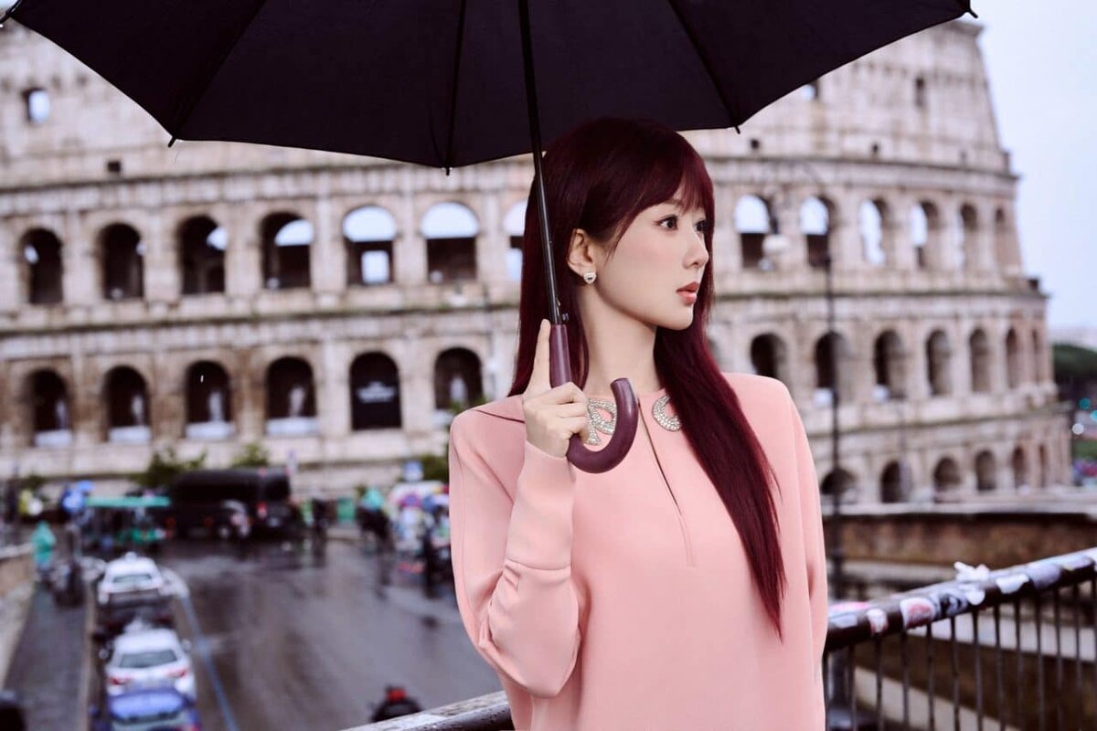 Для самого показа Ян Цзы выбрала нежный образ: она появилась в розовом платье из ранней осенней коллекции Valentino и с зонтиком в руках, прогуливаясь по вечернему Риму. Фотографии, где актриса словно сошла с кадра старого итальянского кино, моментально разлетелись по Сети. В ходе стритстайл-съёмок она также продемонстрировала розовый приталенный пиджак с V-образным вырезом, отделанный атласными бантами, в сочетании с потёртыми джинсами и новой сумкой Panthea. Этот образ назвали «нежным, но с характером» — идеальный баланс женственности и расслабленной элегантности.