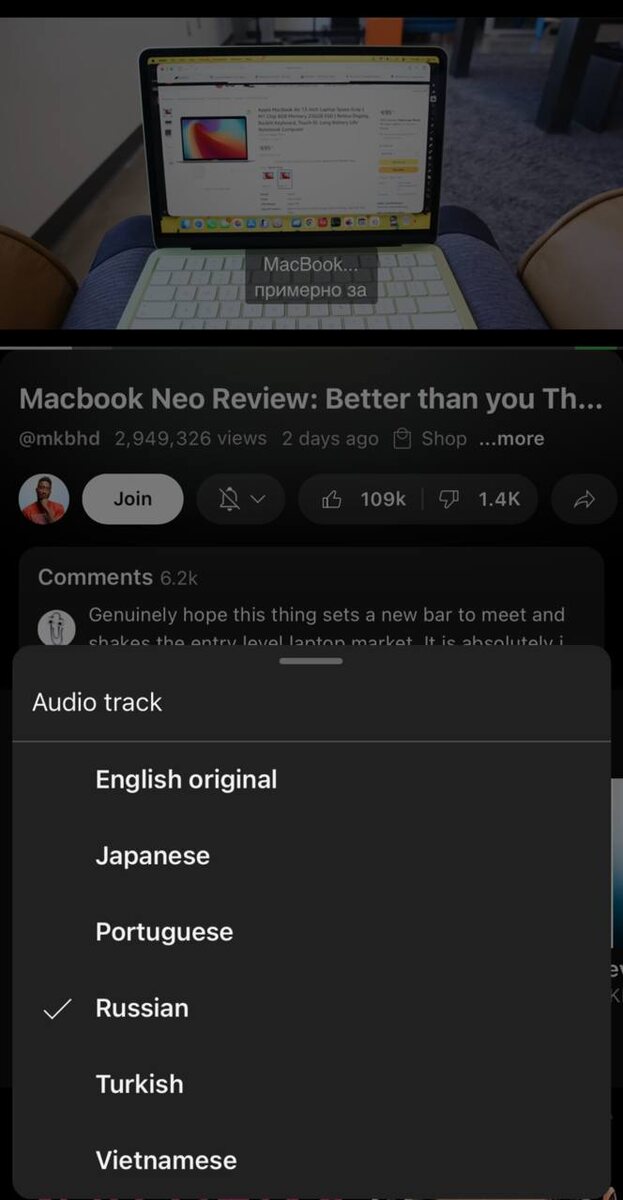 Отдельные дорожки на ютьюб это прекрасно. Вот как мне японцу посмотреть mkbhd? Это на русский можно в Я. Браузере запустить перевод, но японского нет же в нём.