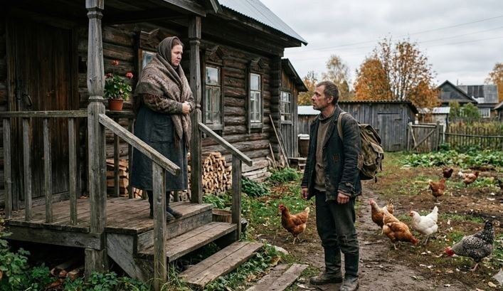Самое странное было не в его возвращении, а в том, куда он пришёл. Не к дальним родственникам. Не в полуразвалившийся родительский дом, у которого давно провалилась крыша. Павел постучал в калитку Нины Белоусовой — молодой вдовы с девятилетним сыном — и попросился пожить в старой летней кухне во дворе.