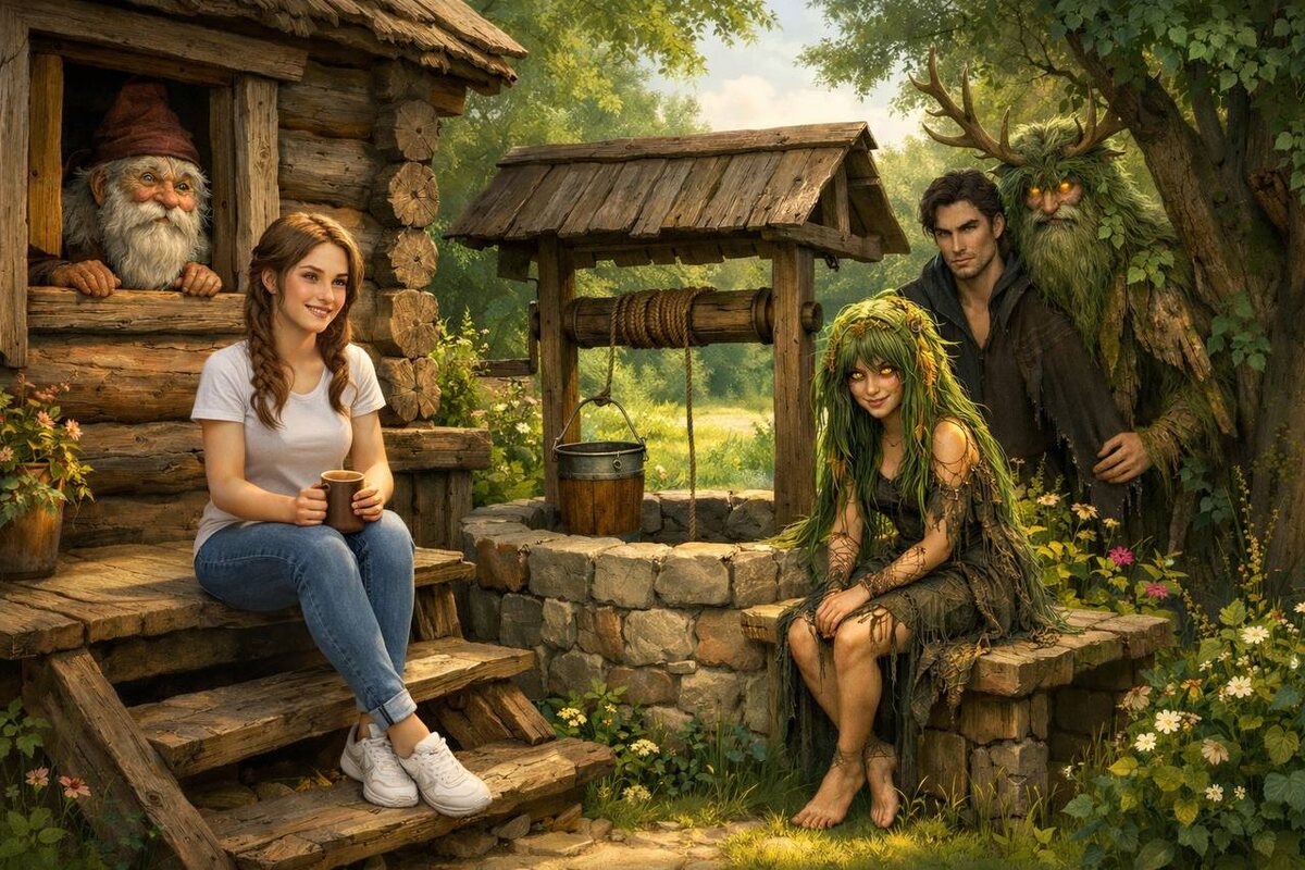 Она закручивалась вихрем, словно чёрный дым. Трава вокруг мгновенно темнела. Вода в колодце тревожно зашумела.