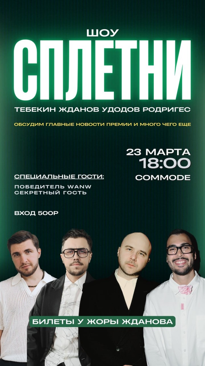 #СанктПетербург #офлайн 🗣Сплетни🗣 Все мероприятия недели (с 23.03 по 29.03.2026) доступны по хештегу: #23мар_29мар26 ⏰ 18:00 📍 Commode, Невский просп., 47 💰 Стоимость 500 руб ❗️ Регистрация Собираемся, обсуждаем сплетни и новости ивента, ржем, смеемся, общаемся. Главная тема - Премия "Wedding Awards NW" Приглашаем всех кто связан с ивент индустрией 📌 Добавить в Google Календарь Афиша профессиональных мероприятий для ивентеров МероПриятели! ВК https://clc.to/oiKisw Дзен https://clc.to/P6N_4A