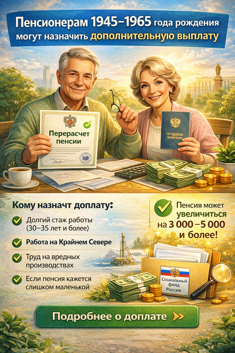 Если общий стаж составляет 30–35 лет и более, особенно если большая часть работы пришлась на советский период. 2. Работники Крайнего Севера