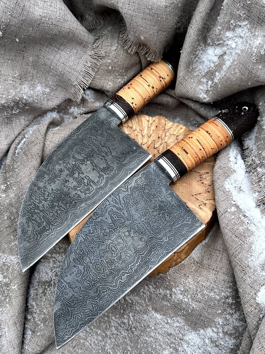 ! 🔥 950 слоёв дамаска — гарантия прочности, остроты и уникального рисунка на каждом клинке. Твердость стали — 62 HRC: нож сохраняет бритвенную остроту даже при интенсивном использовании. 🪓 Идеален для: - Шинковки и нарезки мяса, зелени, овощей - Кухни, похода, подарка ценителю ремесла Тёплая рукоять из натуральной бересты — комфорт даже в холодную погоду. В комплекте — кожаные ножны. Есть вариант с формованными ножнами (+15 000 руб.). 💰 Цена: ~13.940 ₽~ 11.839₽ по акции! Заказ и подробности: 📲 Пишите в Telegram: [@Nazarklinokbot](https://t.me/Nazarklinokbot) 📞 WhatsApp/Viber: +7 910 134-38-31