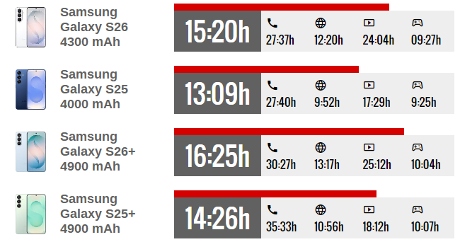 Samsung Galaxy S26 опередил iPhone 17 в тестах автономности GSMArena