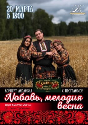 Ансамбль «Калина‑фолк 32» приглашает вас на концертную программу «Любовь, мелодия, весна», где прозвучат прекрасные душевные песни. Приходите, чтобы разделить радость музыки с близкими и друзьями.