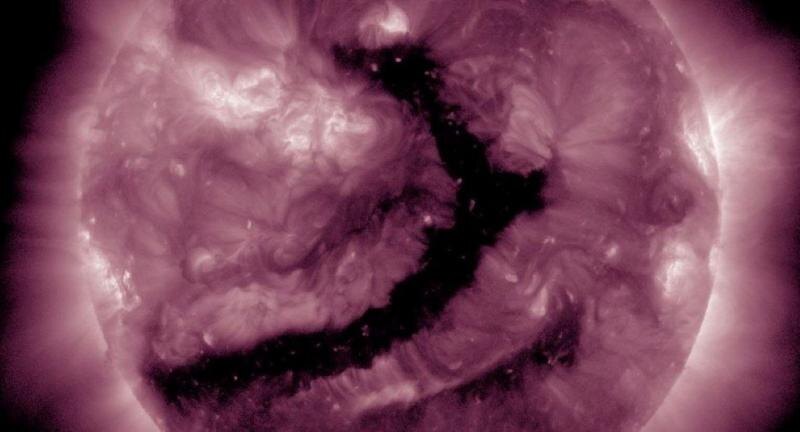 По данным специалистов, в течение ближайших суток скорость солнечного ветра, направленного к Земле, начнет увеличиваться. Ожидается, что вслед за этим начнут повышаться и показатели геомагнитных индексов. Причиной грядущих возмущений стала крупная корональная дыра необычной формы, простирающаяся почти от одного полюса Солнца к другому. Она напоминает огромный разлом. Корональная дыра - образование долговременное, оно наблюдалось месяцем ранее и выглядело как дракон. Прошлое прохождение сопровождалось умеренными магнитными бурыми класса G1-G2 по пятибалльной шкале. Поскольку структура сохранила свою форму и размер, специалисты полагают, что нынешняя ситуация повторит предыдущий сценарий. Компьютерные модели предсказывают первую волну возмущений уже сегодня ночью, что потенциально создаст условия для возникновения ярких полярных сияний. Однако уверенное подтверждение возможно лишь после реального увеличения скорости солнечного ветра, которое пока не зафиксировано. Ранее портал ЯСНО сообщ