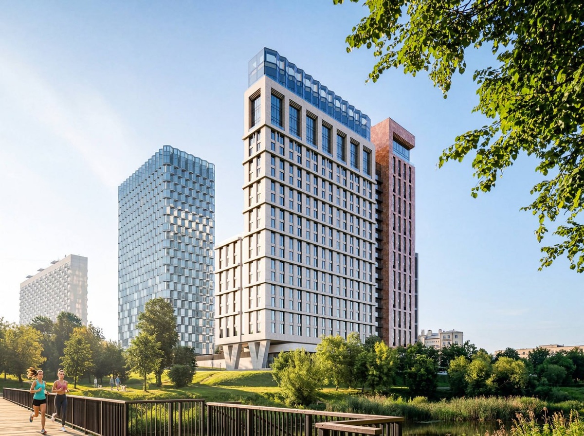 Глазами архитектора: жилой комплекс «МИРА» Жилой комплекс «МИРА» аккуратно вписан в историческую среду Алексеевского района. Локация формирует особое ощущение пространства: виды на ВДНХ, композиционный прострел на монумент «Рабочий и колхозница», парк «Акведук» и Останкинскую телебашню задают будущему дому масштаб и контекст. Каждый корпус отличается по цвету и отделке, но все объединены общей архитектурной идеей и диалогом пропорций внутри объёмов. Дом, выходящий на Проспект Мира, соразмерен с классическим Домом Жолтовского, а здание в глубине квартала отсылает к советскому «Дому на ножках». Центральный акцент — элегантная башня пепельно-розового цвета. Она как ориентир: с её панорамных окон открываются виды на весь район. Башня завершает ансамбль, становясь новой доминантой, но при этом уважительно подчёркивает масштаб исторической застройки. Девелопер – «MR Group» Архитектурная концепция – бюро «Kleinewelt architekten» Адрес: проспект Мира, вл. 186А (СВАО) Via @kleinewelt_a