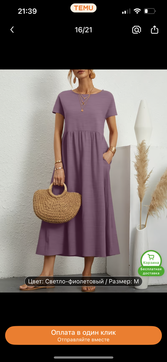 С апреля в нашей местности обычно уже устанавливаются летние температуры, часто бывает и жара за 30 градусов. Апрель совсем скоро, пора уже пересмотреть свой гардероб и составить список покупок. С прошлого года у меня осталось два платья (одно перешло в разряд домашнего), два костюма футболка/брюки (один перешел в разряд домашнего), льняной костюм брюки/футболка (не очень удобно для меня, что требует постоянно глажки), тонкие брюки и несколько футболок (некоторые потеряли свой вид, особенно белые). Этого для меня вполне достаточно, но так как несколько элементов гардероба я уже не могу носить на людях, значит надо заменить. Полезла как всегда на китайский маркетплейс Temy. Заказала 6 позиций на 2800 рублей. Платье за 600 рублей. Ткань синтетическая, но для меня так удобнее, потому что этот материал даже не требует глажки после стирки. Брюки за 480 рублей. Здесь уже ткань натуральная. Похожие брюки у меня были, очень нравились. Удобно, что можно надеть хоть с блузкой, хоть с футболкой