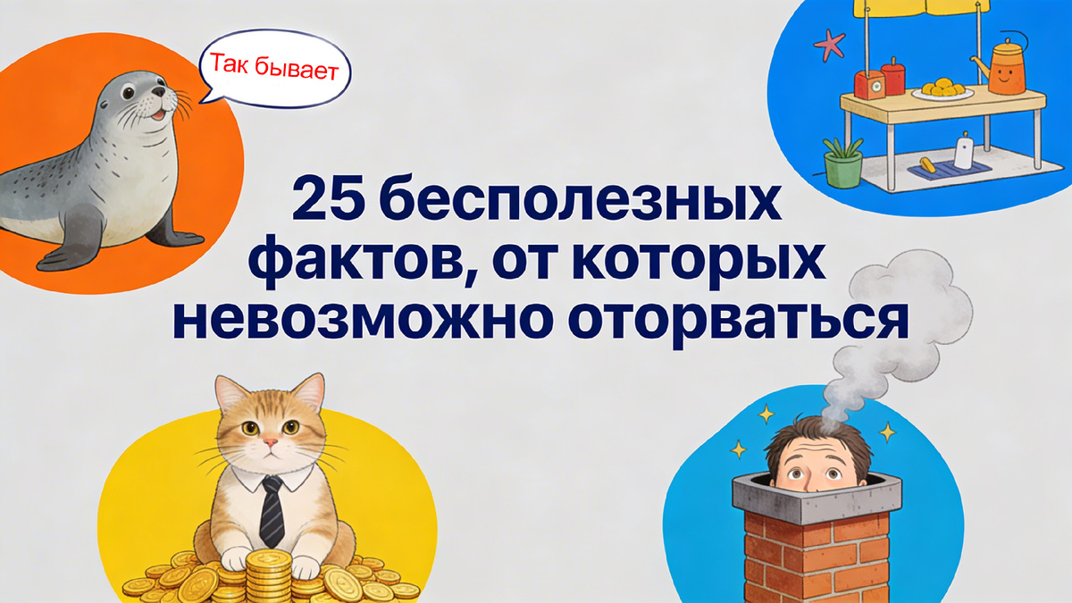Некоторые факты помогают в жизни. Эти — нет. Но почему-то именно от них невозможно оторваться. Каждый из них реален, подтверждён документально и совершенно бесполезен. Именно поэтому мы их и собрали.