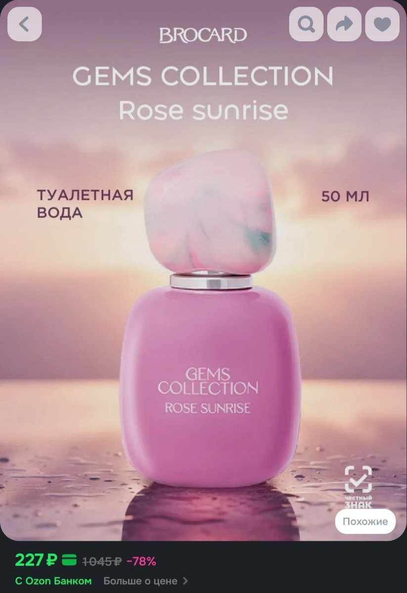 🔥 Brocard/Брокар/ Gems Collection. Rose Sunrise / Драгоценные Камни. Розовый Рассвет жен. туалетная вода 50 мл за 227₽