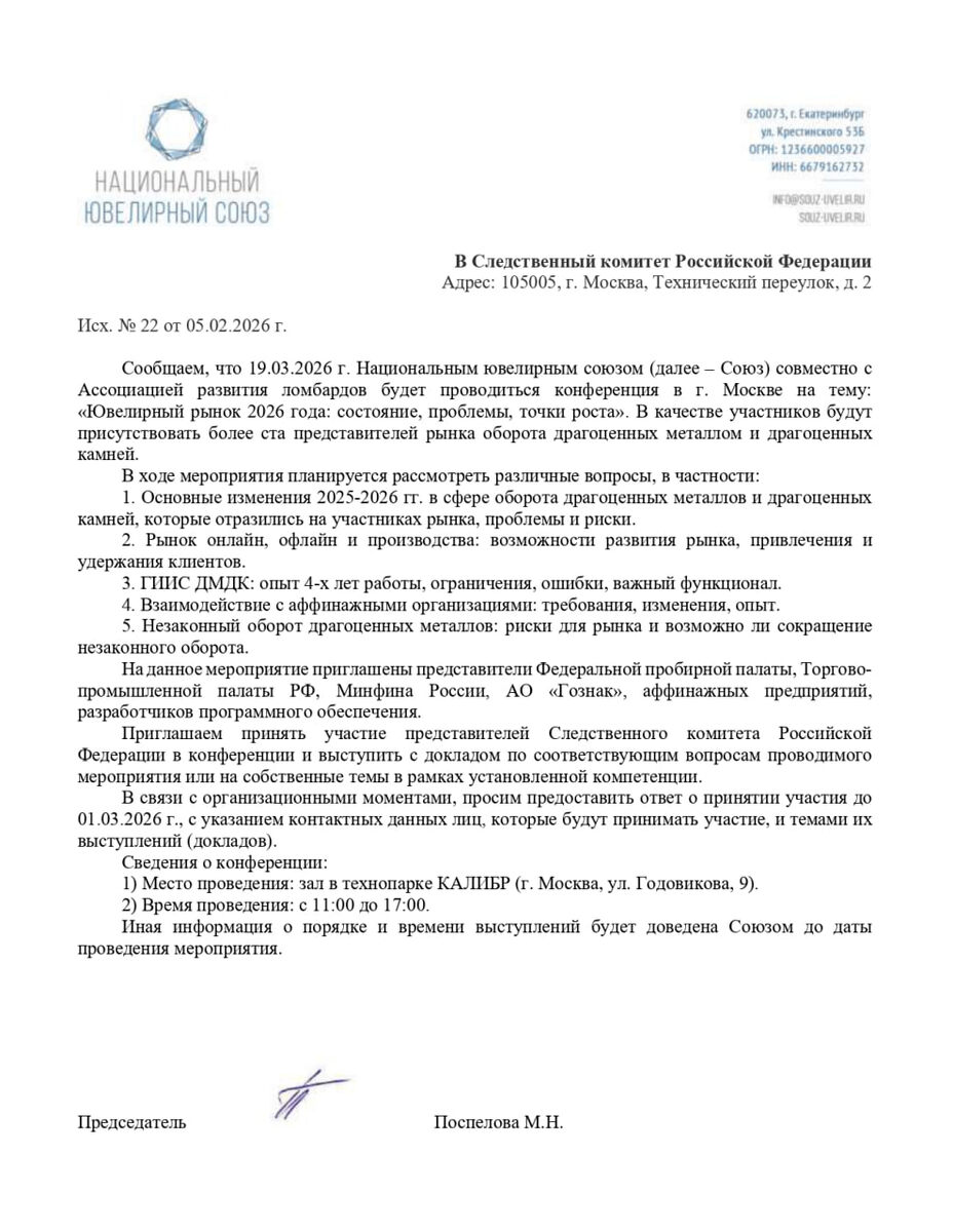 Обращение ювелиров к Следственному комитету РФ и Генеральной прокуратуре РФ