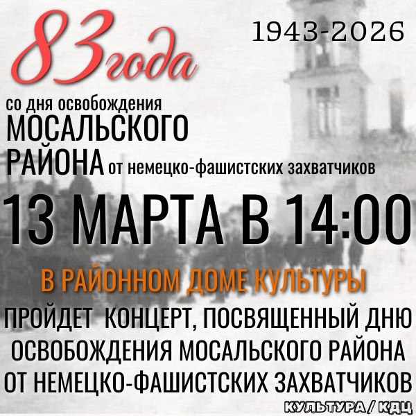 🔥Сегодня🔥концерт, посвященный дню освобождения Мосальского района от немецко-фашистских захватчиков