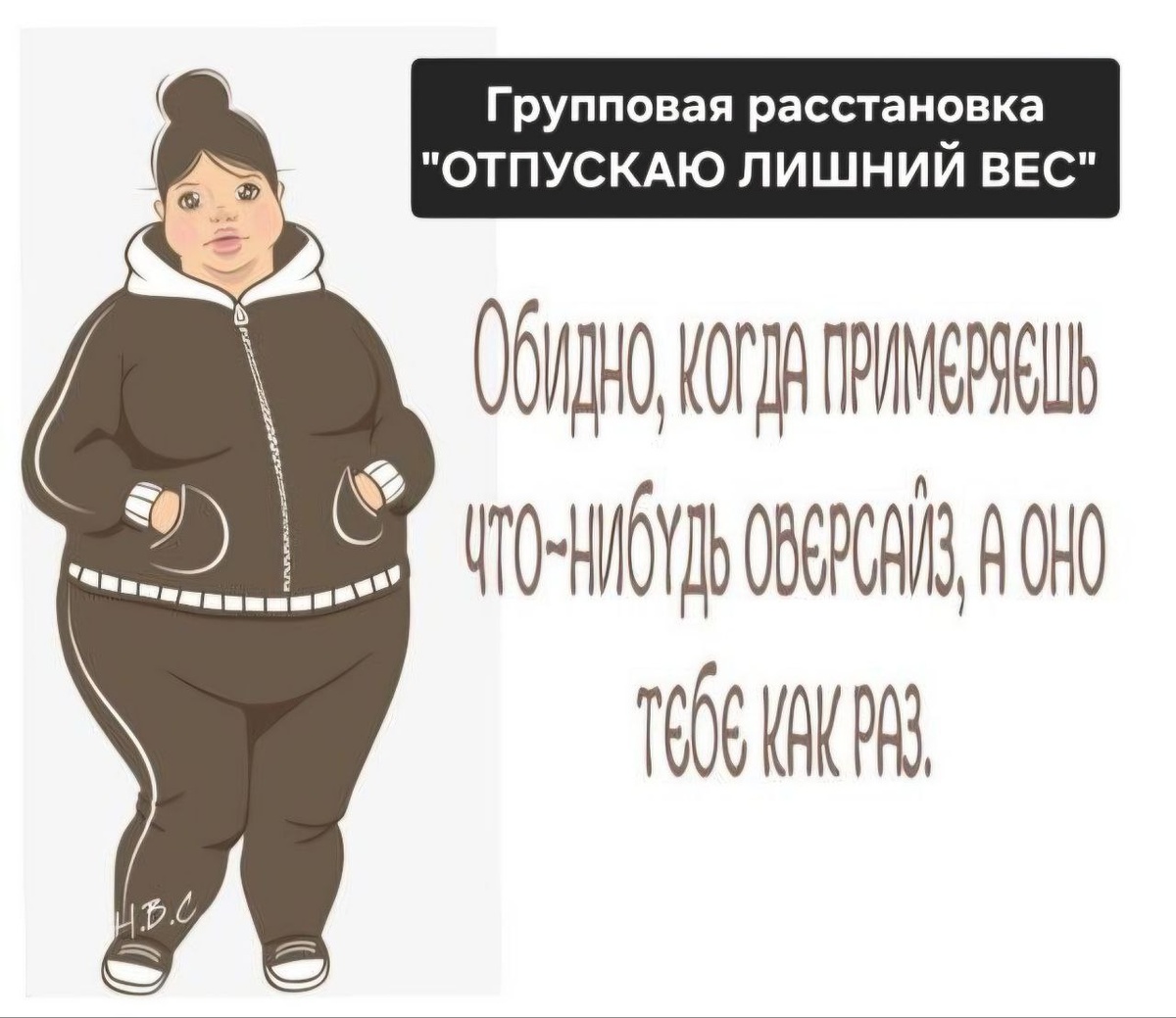 " Нет женщин, которых не волнует это проблема ➖➖➖➖➖➖➖➖➖➖➖ 🔴Вы устали от бесконечных диет и изнурительных тренировок, которые не приносят долгожданного результата? 🔴Чувствуете, что лишний вес - это не просто физическая проблема, а нечто большее? Если да, то расстановка — именно то, что вам нужно! Избавься от лишнего веса, работая с его психологическими причинами! ⚠️ Почему важно работать с психологическими причинами лишнего веса? ‼️ Лишний вес часто является следствием не только привычек в питании и образа жизни, но и глубоких эмоциональных блоков. Страхи, травмы, неуверенность в себе — всё это может влиять на ваше тело и восприятие себя. Понимание этих причин — ключ к успешному и устойчивому снижению веса. 🟢Что вас ждёт на расстановке? 🟠Глубокая работа с бессознательным: мы будем исследовать ваши внутренние установки и убеждения, родовые сценарии, которые могут способствовать накоплению лишнего веса. 🟠Эмоциональная поддержка 🫂 Ты не одна! В группе мы создадим безопасное