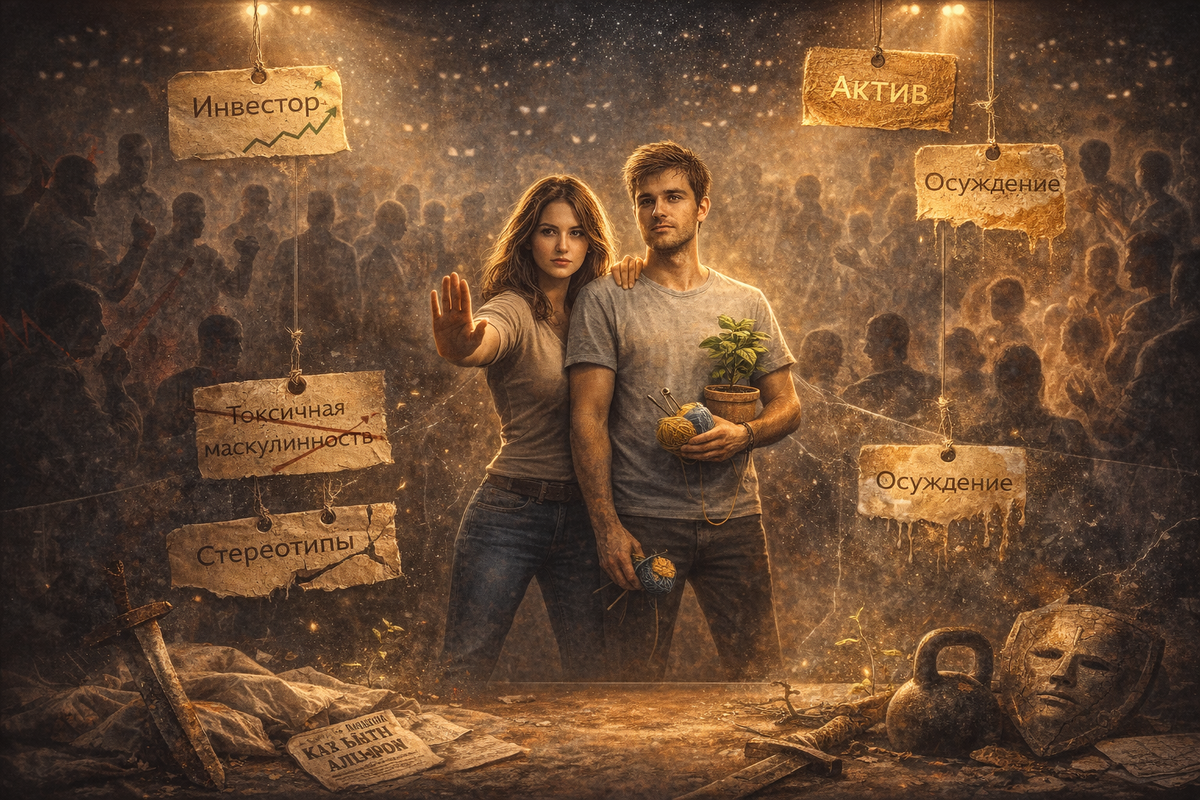 Мы переходим от модели «мужчина должен быть жёстким добытчиком» к модели «мужчина может быть разным». И женщинам это нравится. Потому что за жёсткими доспехами часто скрывается уставший, одинокий человек, который мечтает, чтобы кто-то просто сказал: «Ты молодец. Продолжай заниматься своими растениями. Я прикрою».