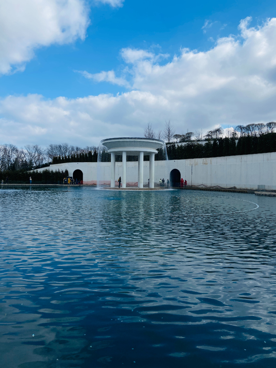 В парке есть несколько зон с небольшими водоёмами. Один из них — это пруд Кратер⬇️. К нему ведут ступеньки, по которым можно спуститься и посидеть, любуясь карпами кои🐟. Вокруг водоема высажены магнолии.