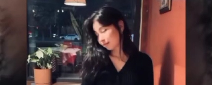 Мы видим, как в кадре появляется девушка в светлой куртке.