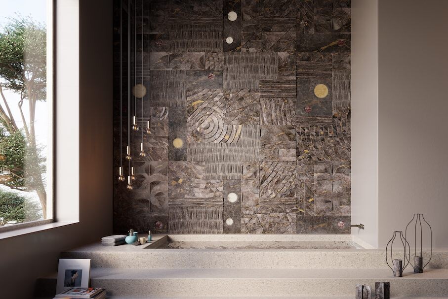 Концепция плитки, разработанная сицилийской компанией Lithea и дизайнером Эджидио Панцера, поистине инновационна: новая коллекция включает шесть элементов с совершенно разными декоративными поверхностями, но все они так или иначе дополняют друг друга, не в последнюю очередь потому, что все они изготовлены из серого мрамора Billiemi. Однако непрерывные линии или целостные структуры не возникают автоматически после укладки.