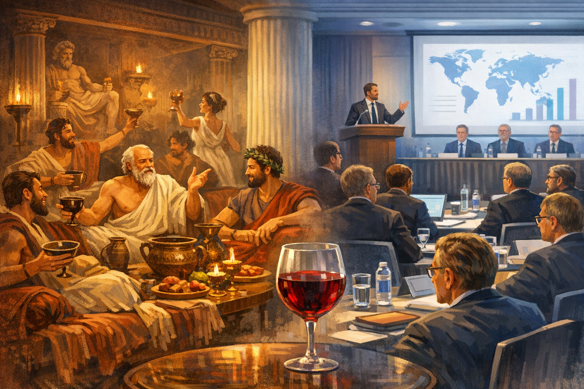 симпозиум - это научное совещание специалистов по определённой проблеме, часто международного уровня. Получается довольно забавная картина. Мы представляем себе строгий научный форум: конференц-зал, доклады, презентации, академические споры. Однако имел ли в виду именно это Платон, называя свой диалог «Симпозиум»? Почти наверняка - нет. В древнегреческой культур