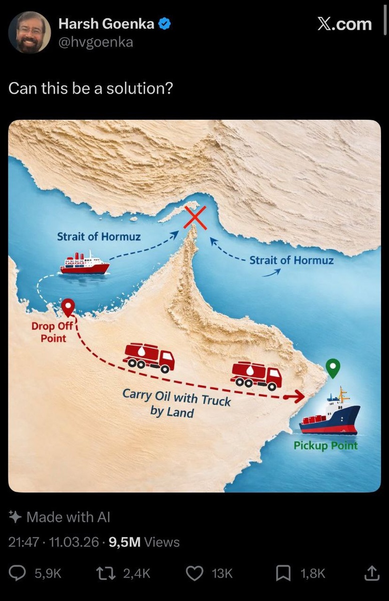 Вопрос решён! Всего-то надо 25% мировых поставок нефти перевезти через пустыню несуществующими грузовиками по простреливаемой трассе