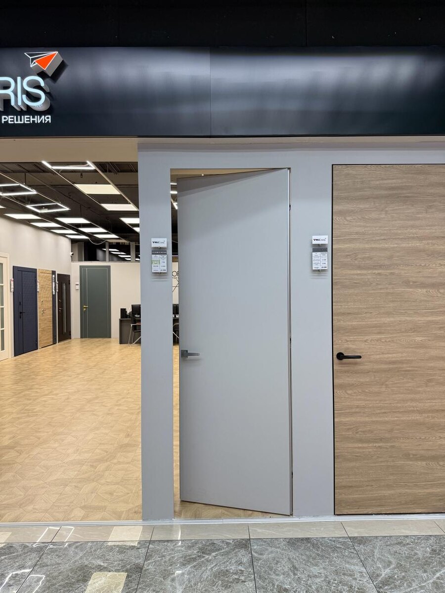 — петли скрыты внутри конструкции Визуально дверь словно исчезает в стене. Особенно эффектно это выглядит, когда полотно