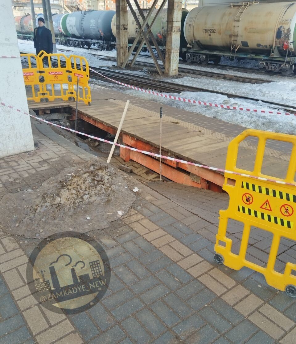 Платформа №4 на станции Мытищи сегодня утром провалилась, сообщает подписчица. Меняют на деревянную🤷♂️