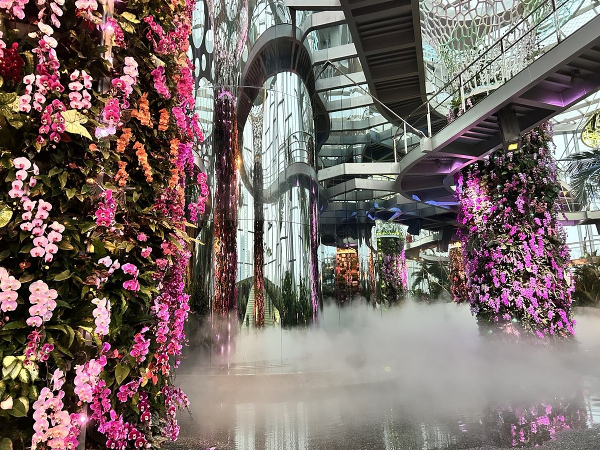 Место, где нужно побывать! Один из крупнейших стеклянных садов-оранжерей в Китае, и это выглядит потрясающе! Огромное пространство, футуристичное оформление и множество прекрасных растений. Три большие зоны с разным настроением и наполнением: «Песчаный оазис» — здесь можно увидеть кактусы, баобабы и другие редкие засухоустойчивые растения. «Лес в облаках» — имитация тропического леса с водопадом. «Облачное ущелье» — зона с перепадами высоты и эффектом тумана, посвященная тропическим цветам. Климат в каждом павильоне воссоздан соответствующий, поэтому стоит позаботиться об подходящей одежде заранее. В павильонах жарко и влажно, но переход от одного павильона в другой проходит через улицу, что тоже стоит предусмотреть - мы были в январе и не пожалели, что не сдали куртку в гардероб. По всему саду есть лавочки или специальные камни/коряги, на которые можно сесть и наслаждаться видом с комфортом. Прогулка происходит по нескольким ярусам по многочисленным мостикам, тропинкам и переходам.