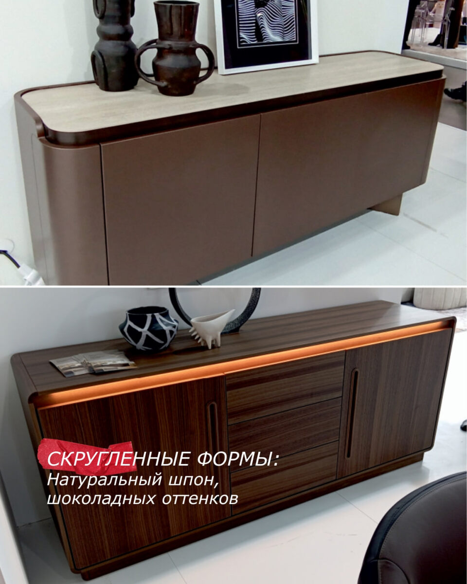 Наша команда всегда в курсе последних тенденций — и на этот раз наш дизайнер посетила масштабную выставку ARTDOM, где встретились ведущие архитекторы, дизайнеры и производители со всего мира. Делимся секретами с передовой дизайна! 👇 1️⃣ Плавные, органические формы — острые углы уступают место округлым линиям. Скругленные фасады шкафов, асимметричные столы — комфорт и гармония в каждой детали. 2️⃣ Смелые цветовые акценты — на фоне нейтральной базы появляется красный цвет в отделке как акцент или основа интерьера. 3️⃣ Свет как элемент дизайна — не просто освещение, а арт‑объекты: подвесные светильники с текстурами, встроенная подсветка ниш, цветные LED‑ленты, создающие настроение. 4️⃣ Мрамор с крупным рисунком — крупные, выразительные прожилки мрамора — акцентный тренд. Такой материал не теряется в пространстве и сразу привлекает внимание. 5️⃣ Шпон шоколадного цвета — глубокий, насыщенный оттенок шпона — один из главных фаворитов сезона. Он придаёт мебели благородный, дорогой вид и отли