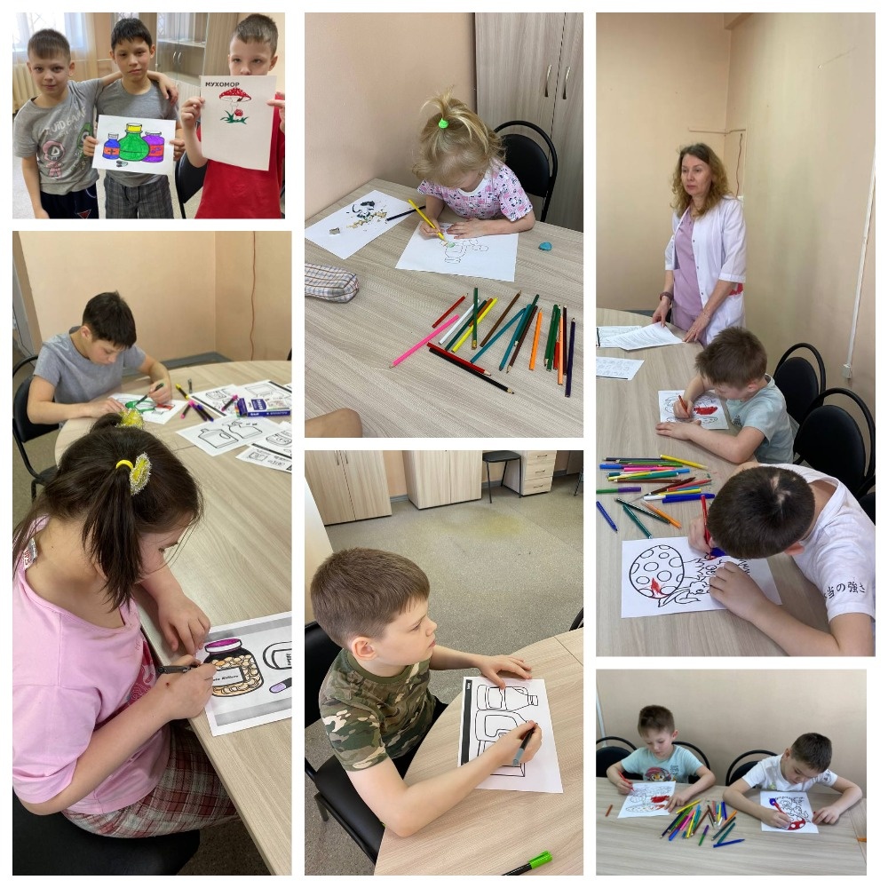 В нашем учреждении специалисты отделения социально-медицинской реабилитации провели для воспитанников важное занятие на тему «Оказание первой помощи при отравлениях». Ребята активно участвовали в обсуждении и разукрашивали тематические картинки, чтобы лучше запомнить, чего стоит опасаться. Специалисты разобрали с детьми самые распространенные причины отравлений: Что делать, если беда случилась? Специалисты подробно объяснили детям алгоритм первой помощи: Специалисты объяснили: лучше предотвратить беду, поэтому нужно всегда мыть руки и ничего не пробовать без разрешения. Ребята ушли с новыми знаниями и обещанием быть осторожными.