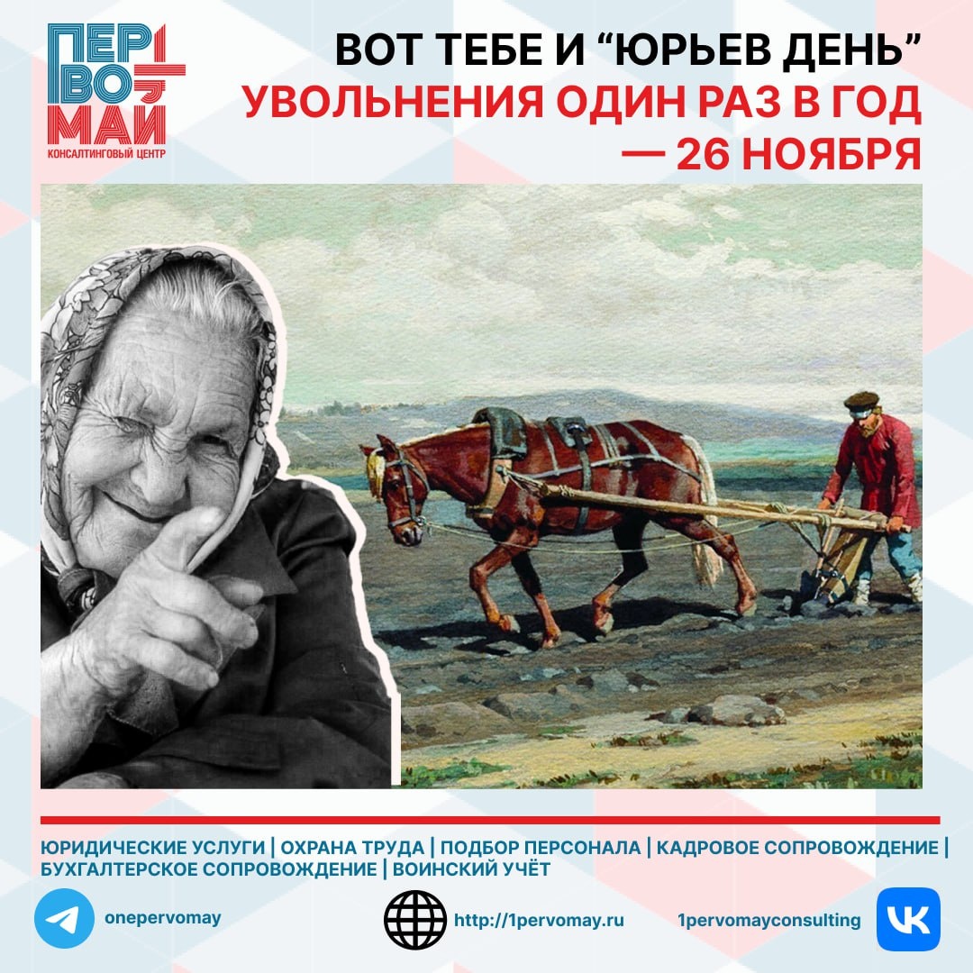 Новость из разряда "нарочно не придумаешь". Предприниматель Герман Стерлигов предложил разрешить сотрудникам увольняться по собственной инициативе только раз в году — 26 ноября, в исторический Юрьев день. По мнению Стерлигова, нынешнее поколение слишком часто меняет работу. Работодатель тратит время и ресурсы на обучение новичка — значит, сотрудник должен отработать минимум год до заветной даты. В Юрьев день крестьяне могли легально перейти от одного землевладельца к другому. Стерлигов считает, что восстановление этой "традиции" научит людей ответственности. А можно мы не будем комментировать?) 📞 +7(343)2530096 ➡️ Получить консультацию и оставить заявку ⬅️ 💬 info@1pervomay.ru