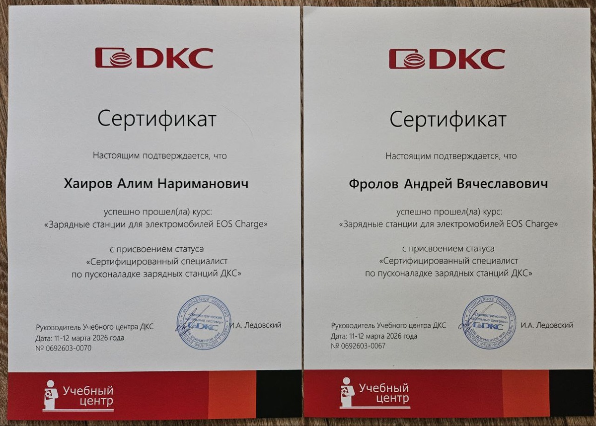 Получили сертификаты, подтверждающие, что прошли курс по Зарядным станциям.