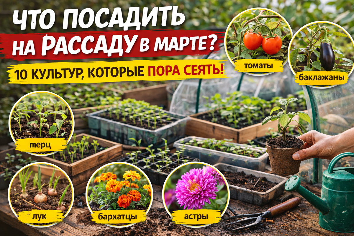 Даже если на улице ещё холодно, многие растения уже пора сеять на рассаду. Если сделать это сейчас, к моменту высадки в грунт растения будут крепкими и хорошо развитыми. Вот что обычно сеют дачники именно в марте. Одна из самых популярных культур для рассады. В марте сеют большинство сортов томатов, особенно: Если посеять их сейчас, к маю получится крепкая рассада. Перец растёт медленно, поэтому его лучше сеять пораньше. В марте обычно сеют: Для хорошего роста важно тепло и много света. Эта культура тоже развивается довольно долго. Поэтому март — одно из лучших времён для посева. Баклажаны любят: В марте можно сеять несколько видов капусты: Такая рассада хорошо переносит пересадку и быстро приживается на грядках. Некоторые сорта лука выращивают через рассаду. Например: Это позволяет получить более крупные и ровные луковицы. Сельдерей имеет длинный период роста, поэтому его сеют довольно рано. В марте обычно сеют: Многие цветы