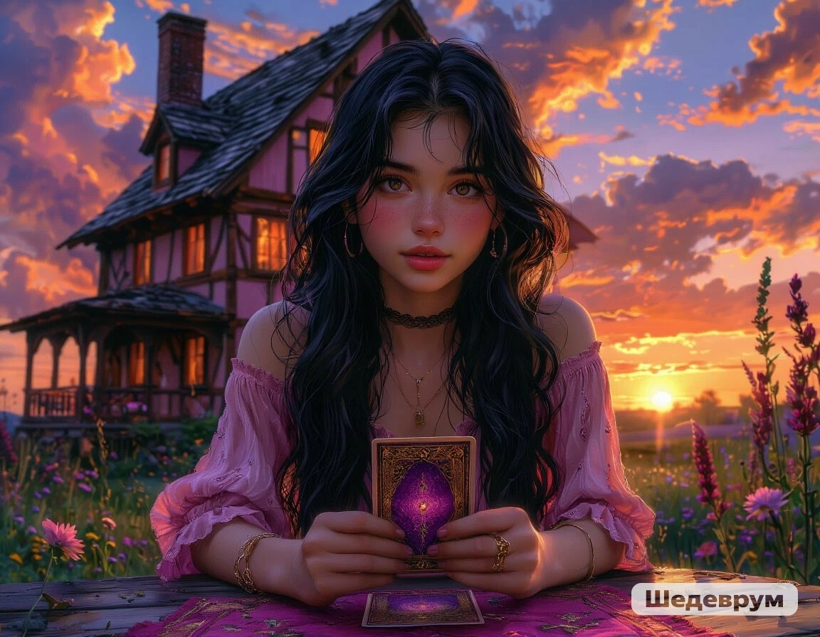 Я же, опишу своё стандартное видение-трактовку. Если почувствуете, что где-то внутри мой текст "откликается" , то так тому и быть. Если ощутите отторжение информации, то прислушивайтесь только к себе🙌. На сегодняшней метафорической карте - дом поднят человеком высоко над землёй, а внизу отражается вода и просторное поле. Дом - опора, семья и личные границы, высота - ответственность и нагрузка, вода - эмоции и очищение, закатное небо - перемены и зрелые решения. День предвещает проверку на устойчивость: многое будет держаться на вашей внутренней силе, но результат порадует. Утром - наведи порядок дома и в мыслях, выбери тёплые жёлтые, оранжевые или коричневые оттенки. Днём - занимайся бытовыми, денежными и семейными вопросами, приним