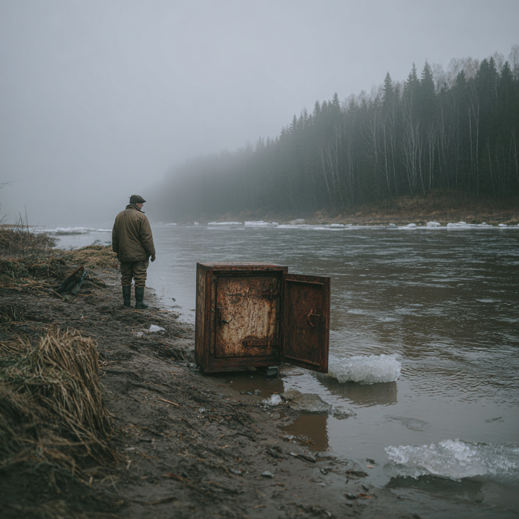 Его некогда зеленая краска пошла глубокой ржавчиной, а бока были измяты льдинами, словно река играла им, как консервной банкой. Макар обошел находку кругом. Сейф был старый, советский, из тех, что раньше стояли в конторах леспромхозов. Ледоход каким-то чудом сорвал его с гнилых петель или вымыл из обрушившегося берега где-то далеко в верховьях.