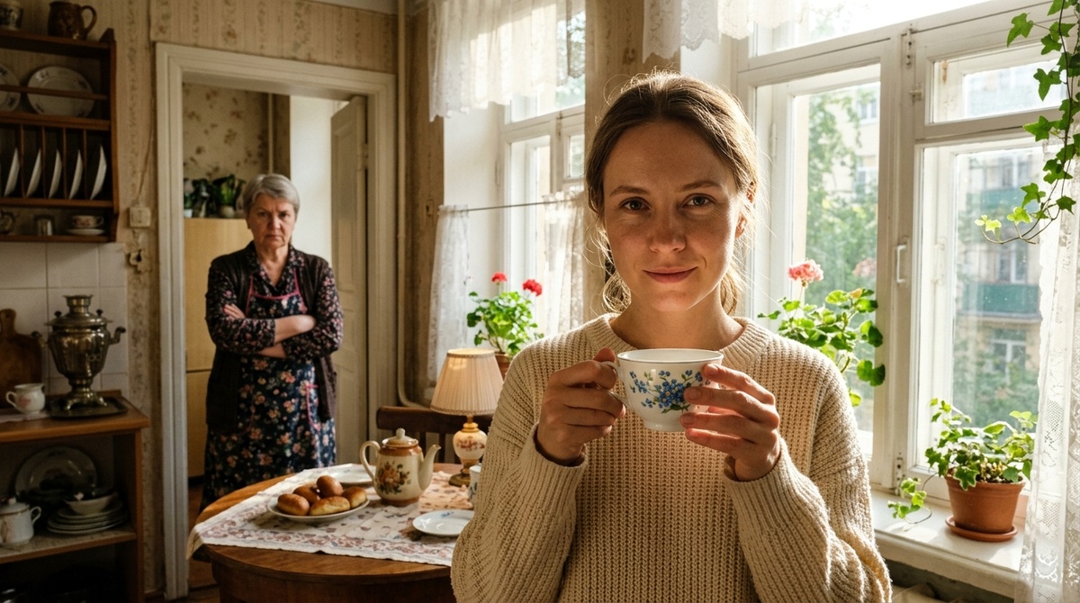 Светлана медленно взяла фарфоровую чашку в руки. Перевела взгляд на новую кружку. Потом на дверной проём, откуда доносились уверенные шаги её свекрови Галины Павловны, которая три дня назад переехала к ним «помочь с ремонтом».
