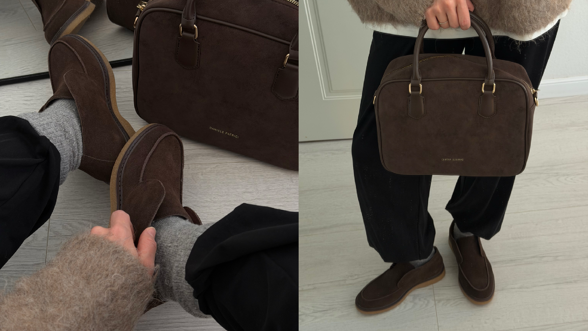 Замша — материал, который всегда выглядит благородно и добавляет образу глубину. В коричневом оттенке она раскрывается особенно красиво: мягкая фактура деликатно рассеивает свет, благодаря чему цвет выглядит тёплым, насыщенным и очень уютным. Ботинки из натуральной замши (арт. W7100225) притягивают внимание именно этим сочетанием оттенка и фактуры. Лаконичный силуэт и аккуратные линии делают модель универсальной — такая пара легко впишется в повседневный гардероб и будет гармонично смотреться как с денимом, так и с более собранными образами. Дополнить их можно сумкой-тоут (арт. 064093Y0) в похожей фактуре. Объёмная форма и мягкий материал поддерживают общее настроение образа, создавая стильный и цельный комплект на каждый день. Если вам тоже нравится благородная фактура замши — такой комплект точно стоит взять на заметку.