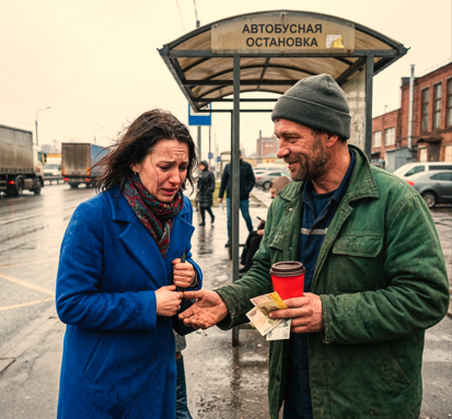 — Держи на проезд, бедолага, — усмехнулся рабочий, протягивая ей деньги. — Тут на маршрутку хватит. И на булку сдобную у метро останется.