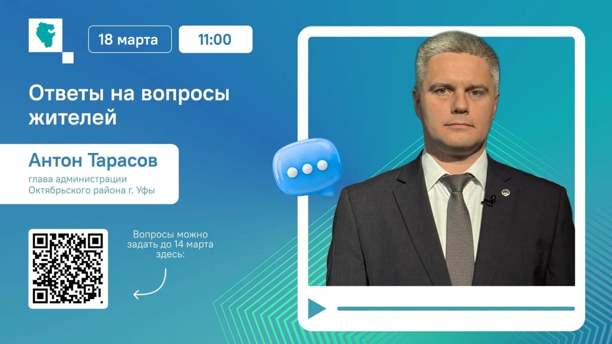– о благоустройстве, ремонте дорог, развитии инфраструктуры, социальной поддержке. Смотрите эфир 18 марта в 11:00. Задавайте свои вопросы до 9:00 14 марта здесь: https://pos.gosuslugi.ru/lkp/direct-line/12224/ 👍 ЦУР Башкортостана