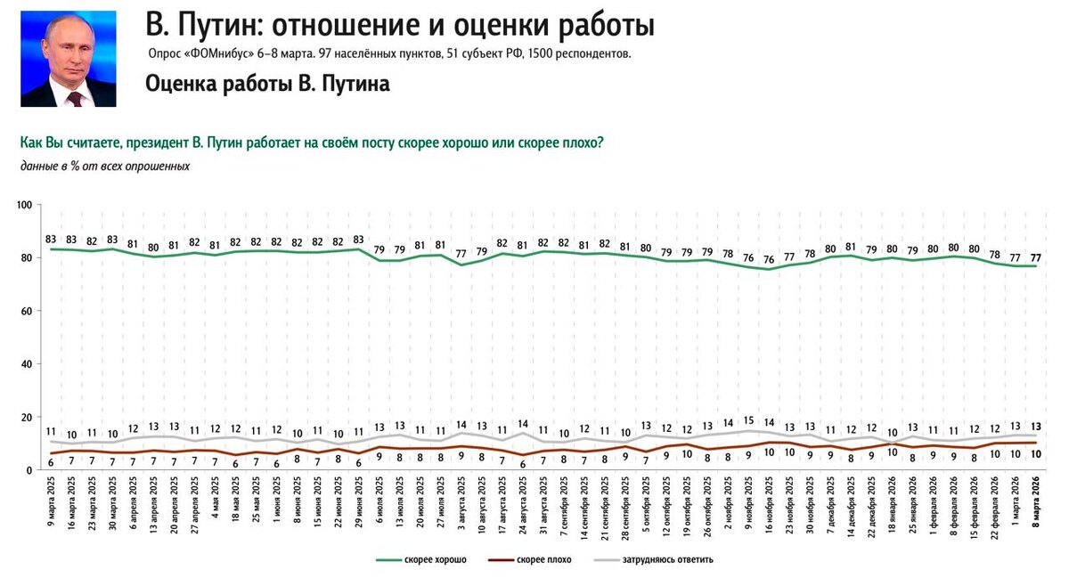 Результаты еженедельного опроса 6 – 8 марта 2026 года.