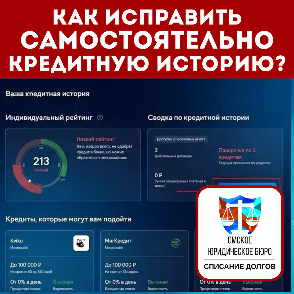 ❗Важный дисклеймер: если кто-то вам обещает исправить кредитную историю — не верьте, нет легальных способов для «отбеливания» кредитной истории. Но есть несколько способов, как самостоятельно улучшить свою кредитную историю. Делимся с вами рабочими лайфхаками: 1. Проверяйте свою кредитную историю хотя бы раз в год. Сделать это можно бесплатно на трех основных сайтах Бюро кредитных историй. Вот прямые ссылки на них: ✅credistory.ru ✅scoring.ru ✅nbki.ru Регистрация простая, через Госуслуги, отчеты формируются в течение 5-10 минут. Здесь вы сможете увидеть свой кредитный рейтинг, а также проверить, не указаны ли здесь кредиты, оформленные на вас по ошибке(если есть, то нужно направить заявление на исправление данных). 2. Нулевая кредитная история — это плохо. Вам просто не одобрят крупный кредит, даже если у вас стабильная работа и высокий доход. Нужно раскачать кредитную историю, например, для начала возьмите товар в рассрочку(вы даже можете погасить его досрочно, важно, чтобы этот кредит